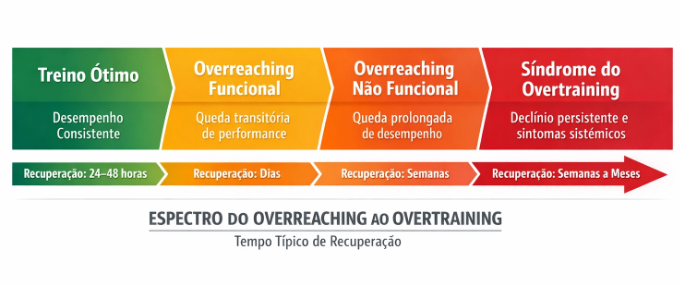 Na rotina do esporte, é comum confundir cansaço normal com overtraining. O consenso da ECSS e ACSM descreve um espectro: functional overreaching queda breve de desempenho, com melhora após alguns dias, nonfunctional overreaching queda que se prolonga por semanas e, no extremo, a síndrome do overtraining, com recuperação que pode levar semanas a meses. A diferença central não é “quanto você treinou”, mas quanto tempo o desempenho e os sintomas demoram a normalizar.