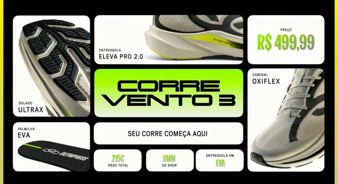 A Olympikus escolheu São Paulo para apresentar a nova Família Corre, formada pelos modelos Corre 5, Vento 3 e Trilha 3. O lançamento acontece no momento em que a marca completa 50 anos e reforça uma direção clara. Construir produto a partir de quem realmente corre